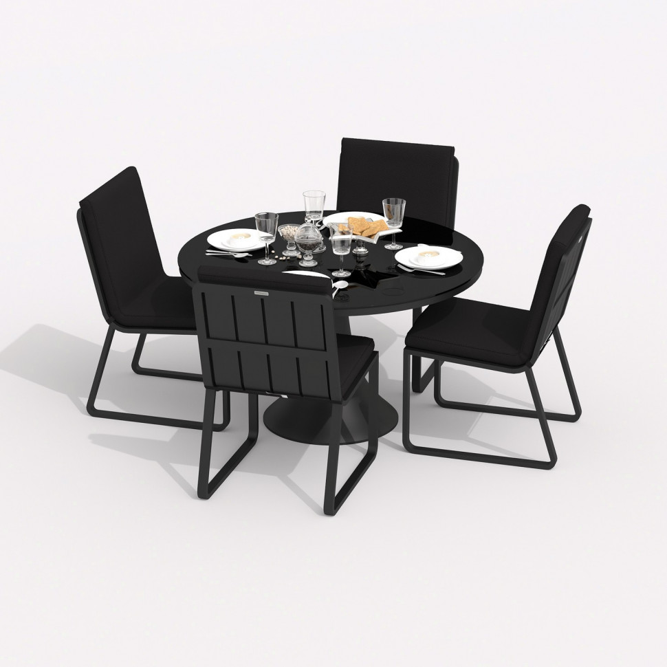 Обеденная группа DIVA GIRA каркас карбон / стол стекло диа 110 / ткань черная