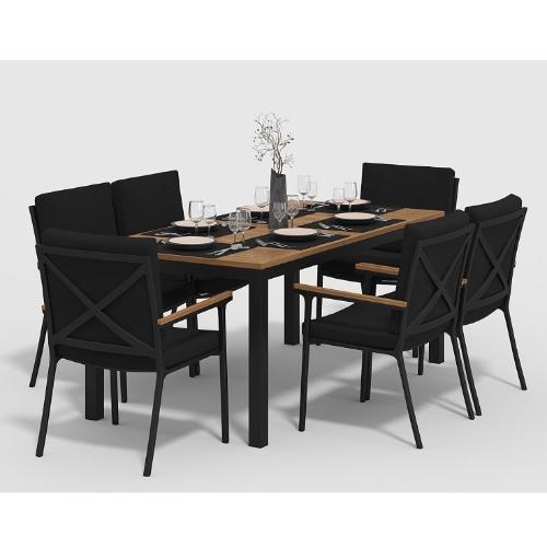 Цвет: каркас темно-серый карбон/подушки черные/столешница тик