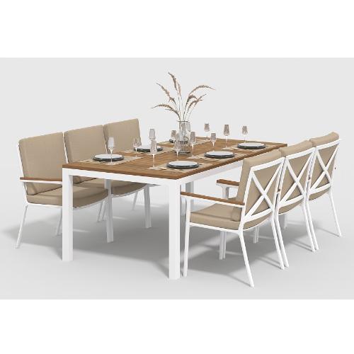Цвет: каркас белый/подушки бежевые/столешница тик