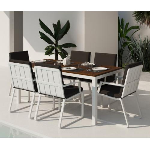 Цвет: каркас белый / подушки антрацит / столешница тик