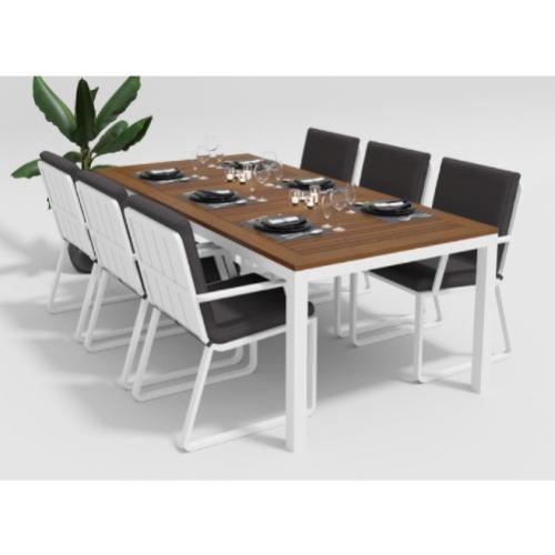 Цвет: каркас белый / подушки антрацит / столешница тик