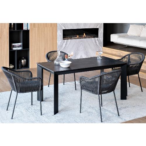 Обеденная группа 4SiS Венето на 4 персоны со стульями Лион, каркас темно-серый, роуп темно-серый