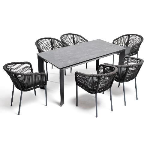 Обеденная группа 4SiS Венето на 6 персон со стульями Марсель, каркас темно-серый, роуп темно-серый