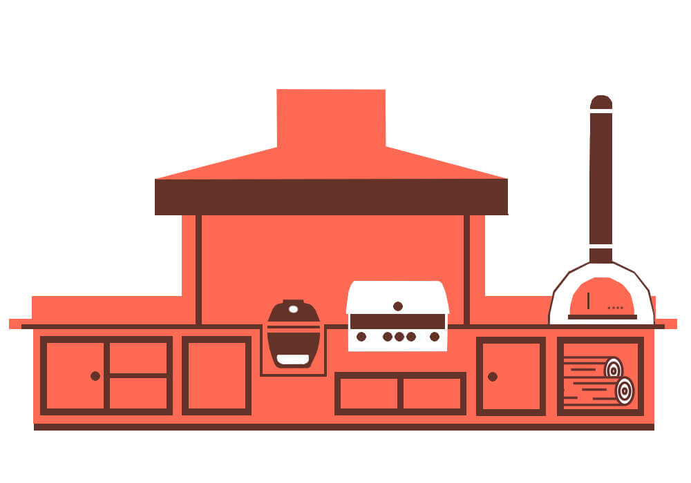 Корпус и фасад модуля выполнены из оцинкованной стали. Датчик температуры и регулируемые вентиляционные отверстия. Регулируемый поддув. Регулируемые ножки. Крышка мангала открывается на 100˚.