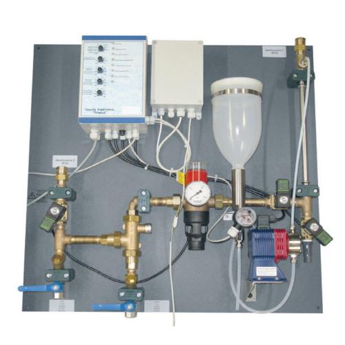Полная коммутация и предварительный монтаж на синей полипропиленовой пластине всех управляющих компонентов душа.