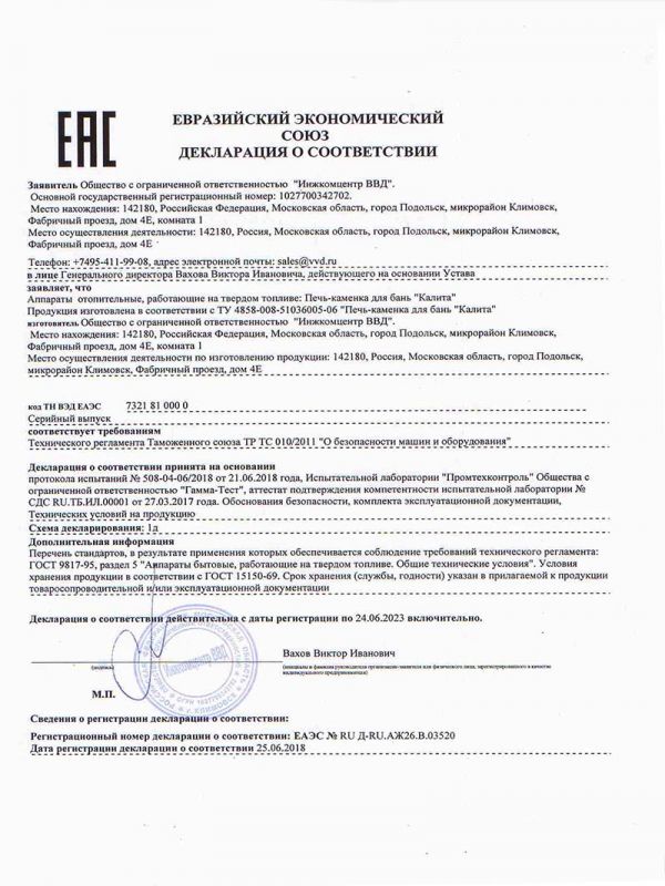 Инструкции, чертежи, документы - Банная печь Инжкомцентр ВВД Калита М арочная Pro (талькохлорит)