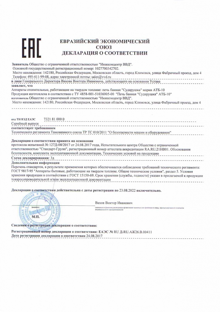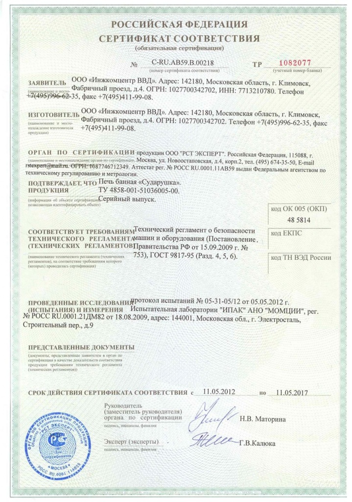 Инструкции, чертежи, документы - Банная печь Инжкомцентр ВВД Сударушка Руса-Семейная