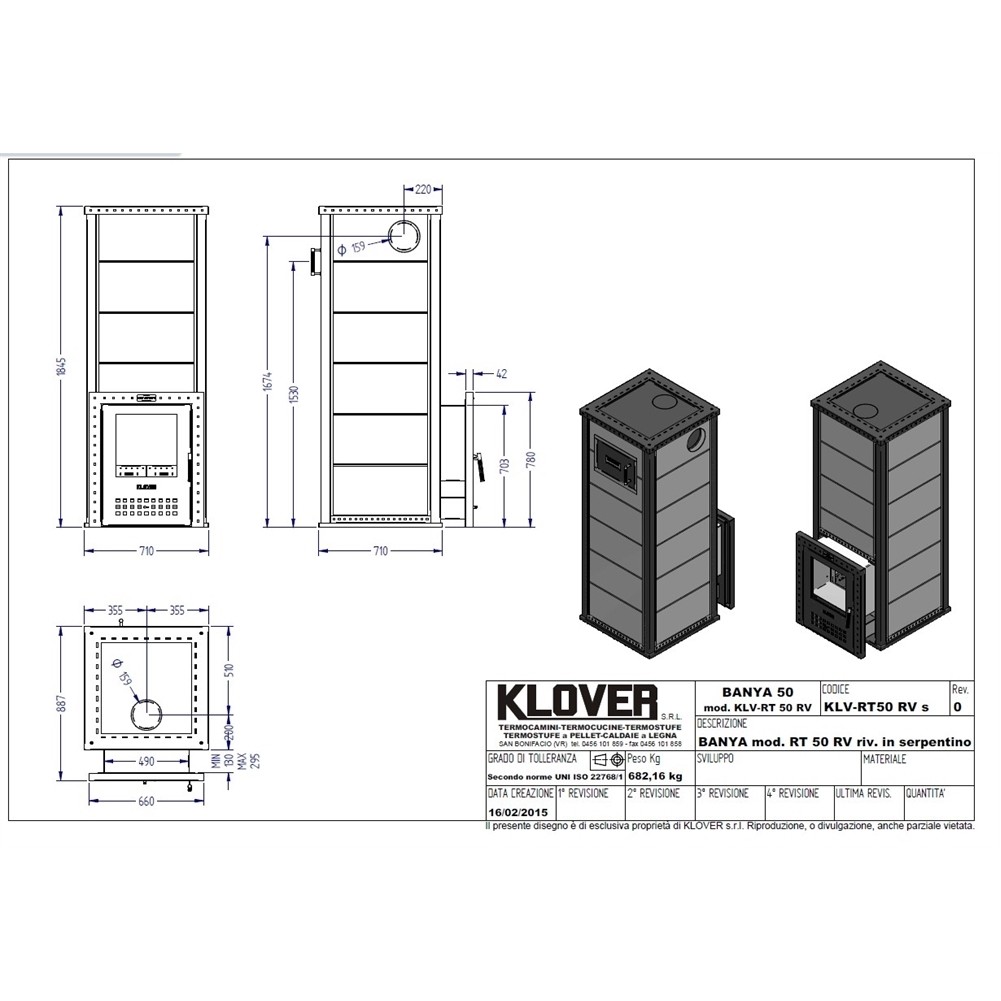 Инструкции, чертежи, документы - Банная печь Klover RT 50-RV в облицовке серпентинит
