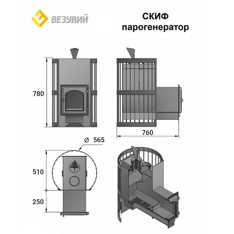 Инструкции, чертежи, документы - Банная печь Везувий Скиф Парогенератор Стандарт (ДТ-4С)