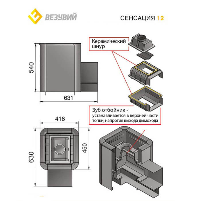 Инструкции, чертежи, документы - Чугунная печь Везувий Сенсация 12 антрацит (220)