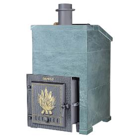 Поток Б, поступает через колосниковую решетку в нижнюю часть первой камеры. Поток В по отдельному воздушному каналу попадает во вторую камеру дожига расположенную под каменкой печи. Здесь он смешивается с огнем, вызывая активное горение пиролизных газов и резкий рост температуры. Это позволяет менее чем за 1 час нагреть массивную каменку с закладом до температур свыше 600С. Каменка находится внутри топки и нагревается прямым огнем со всех сторон. Огромный запас тепла в такой каменке делает печь «незаливаемой». На камни можно лить воду для получения мелкодисперсного и легкого пара в количествах, многократно превышающих стандартные нормы для парных помещений. Без такого пара невозможно создать микроклимат настоящей Русской Бани.