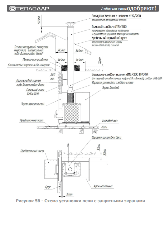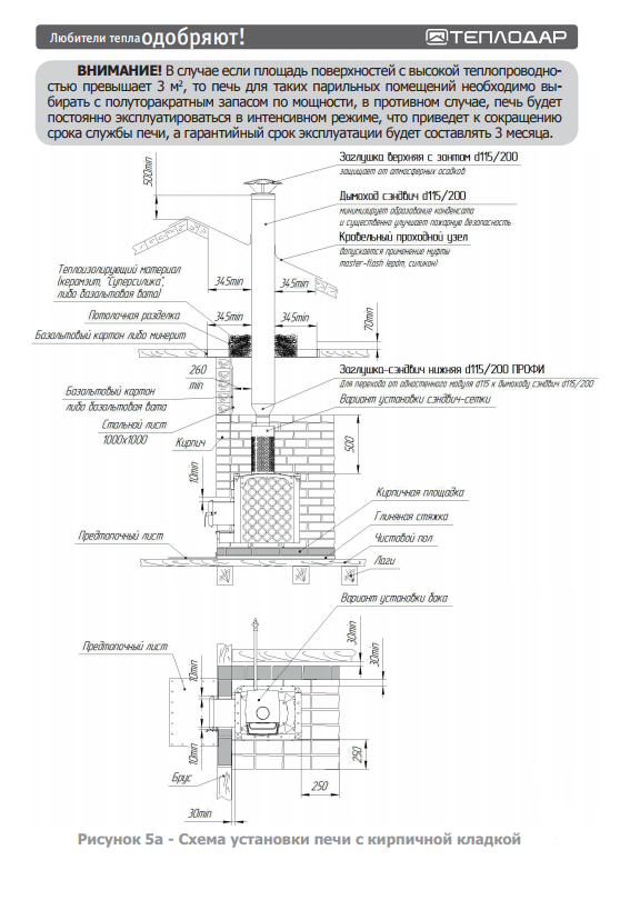 Инструкции, чертежи, документы - Печь-каменка чугунная Теплодар Былина 24 Ч