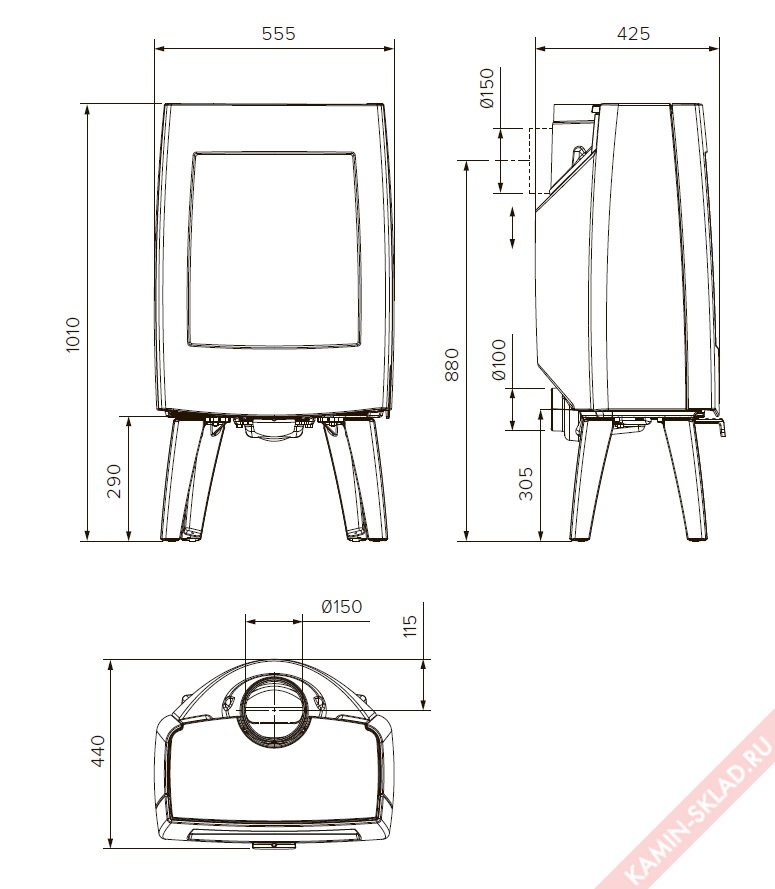 - Диаметр дымохода, мм 150