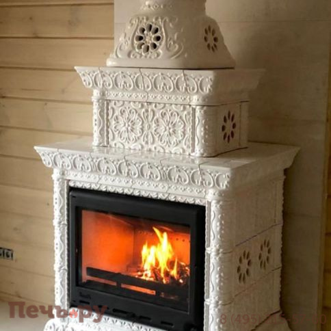 Готовый камин КимрПечь Кострома пристенный-двухъярусный (топка Chazelles D70, цвет Белый)