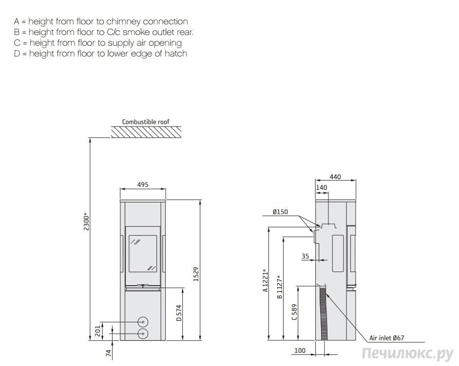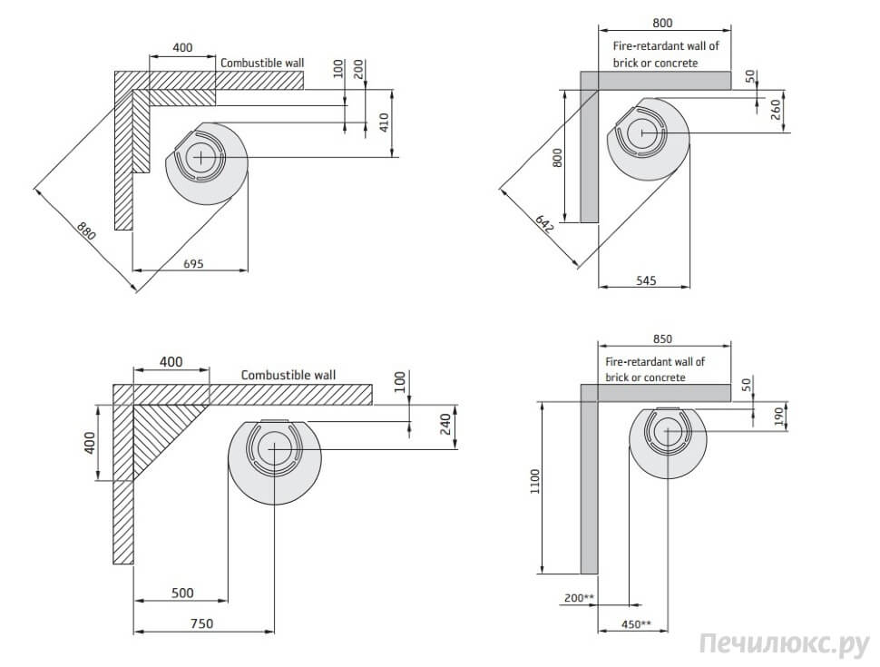 - Выход дымохода Сверху/Сзади