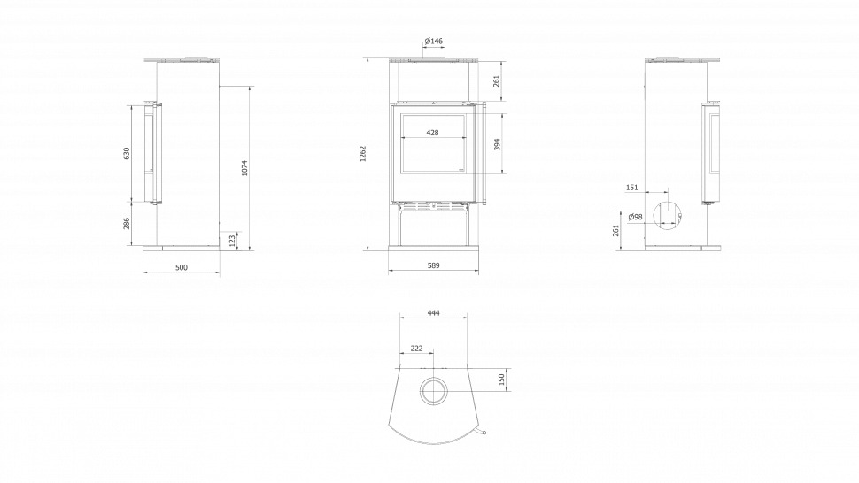 высота - 1262 мм, ширина - 589 мм, глубина - 500 мм.