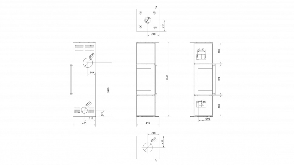 высота: 1443 мм, ширина: 435 мм, глубина: 435 мм.