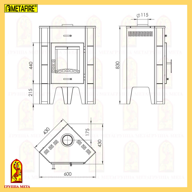 Инструкции, чертежи, документы - Печь-камин Мета Пехорка 6 угловая (без плиты)