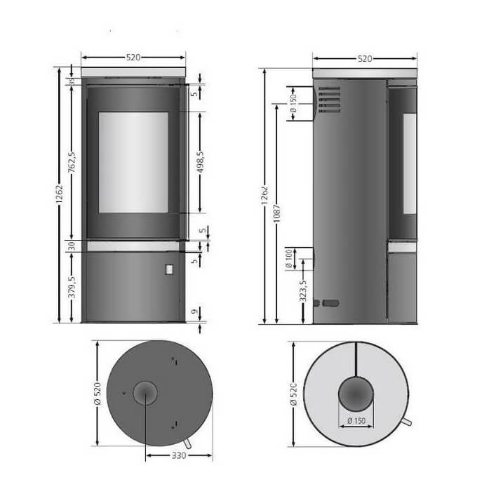 - Диаметр дымохода, мм 150