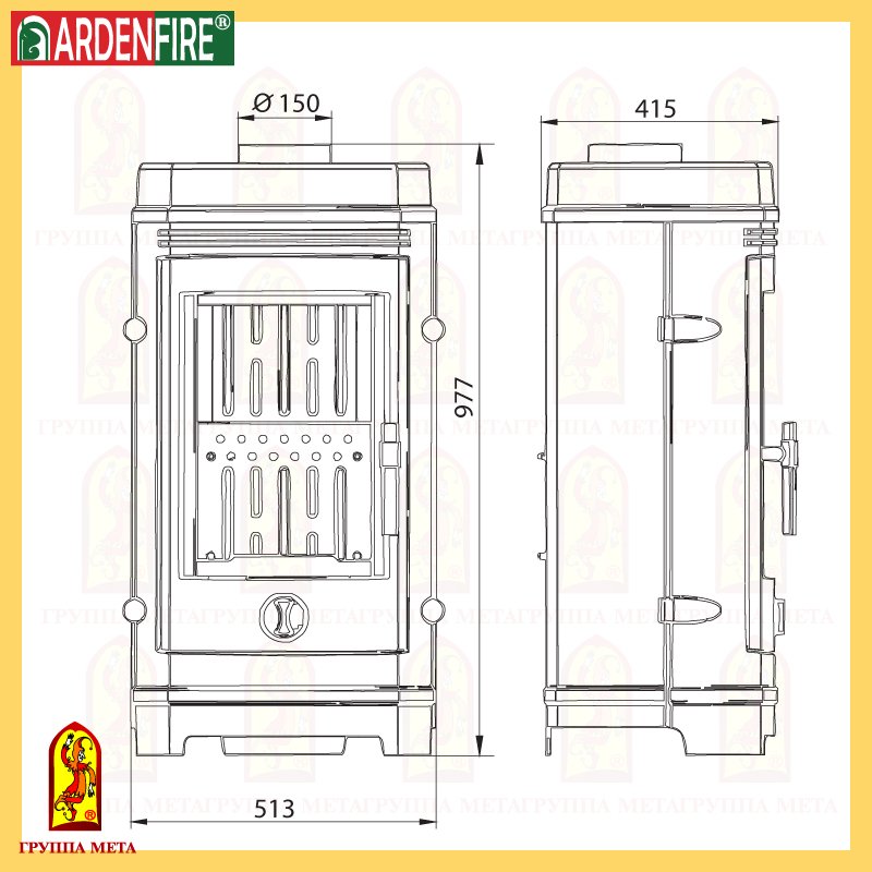- Диаметр дымохода, мм 150