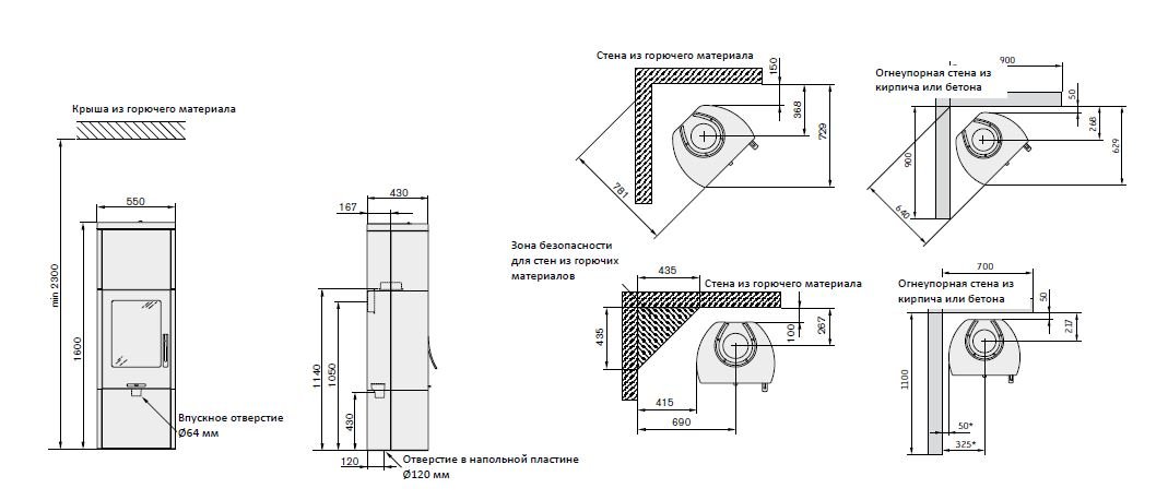 - Диаметр дымохода, мм 150