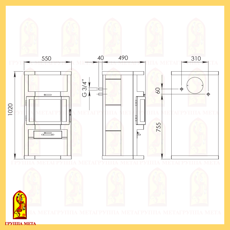 Инструкции, чертежи, документы - Печь-камин Мета Ангара Аква (без плиты)