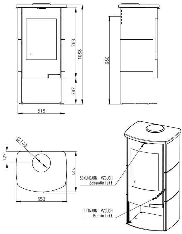 По умолчанию печь имеет верхнее подключение дымохода. При заднем подключении может понадобиться верхняя заглушка к печи. Приобретается отдельно.