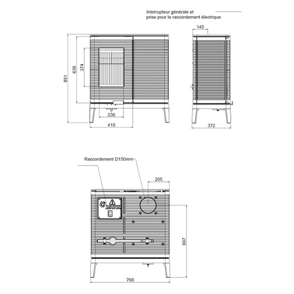 - Диаметр дымохода, мм 150
