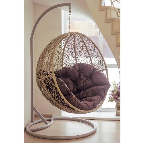 Прочное и долговечное подвесное кресло с металлическим каркасом и плетением из искусственного ротанга — это идеальное решение для создания комфортной зоны отдыха в вашем доме или саду.