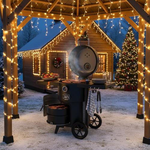 - Вмещает до 3,6 кг угля и дров, обеспечивая до 14+ часов стабильного копчения.