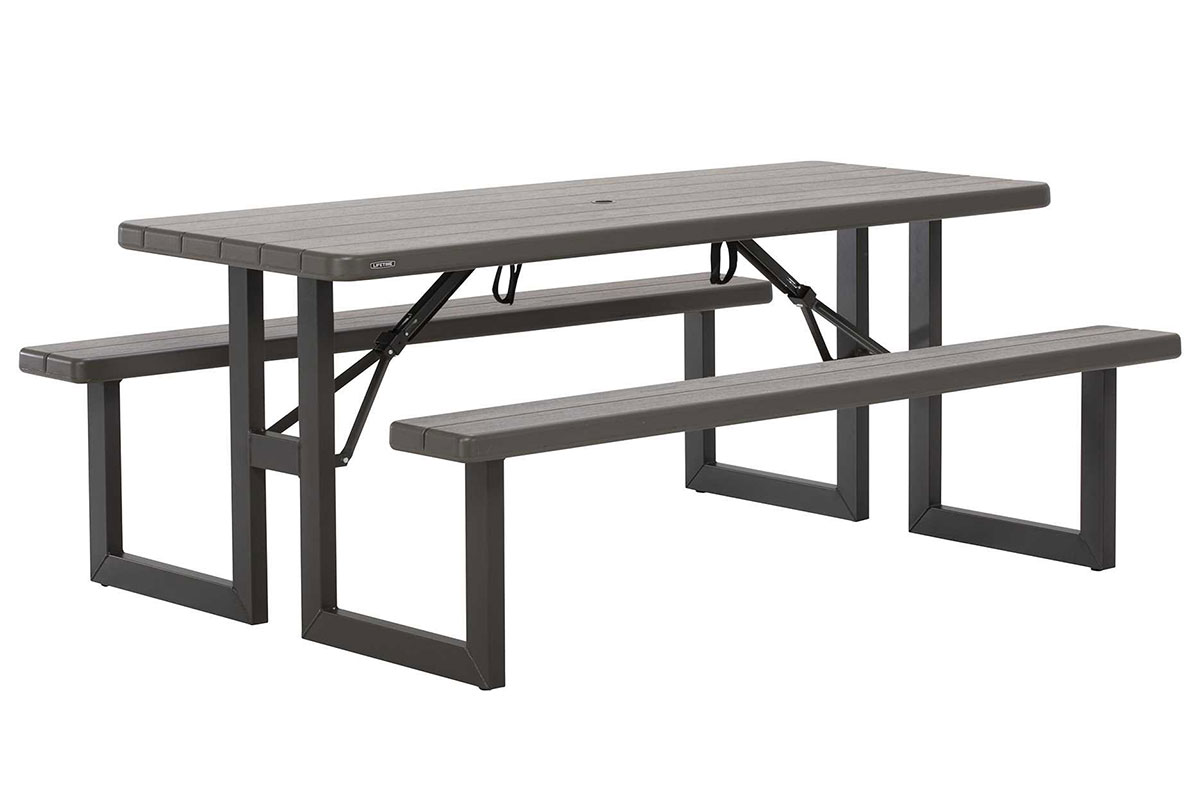 - Надежность. Стол со скамьей имеет усиленную стальную раму и изготовлен с применением прочного пластика, который не рассыпается, не трескается и не расслаивается. Максимальная допустимая нагрузка на скамью - 408 кг.