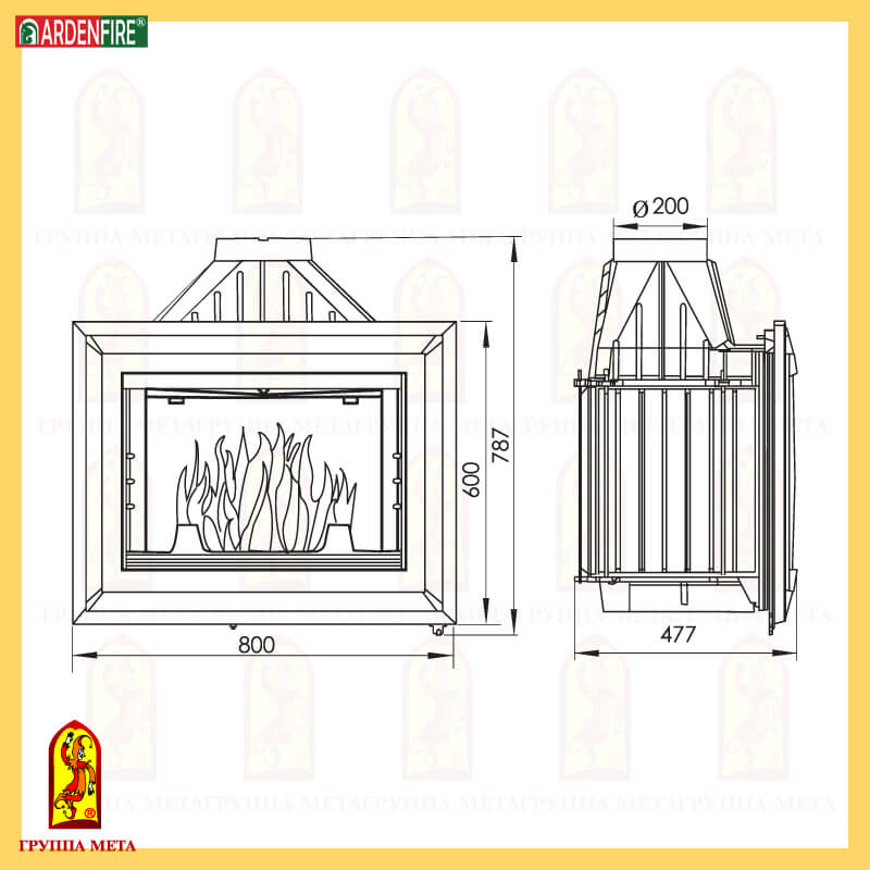 Инструкции, чертежи, документы - Чугунная топка Мета Фламбокс 800