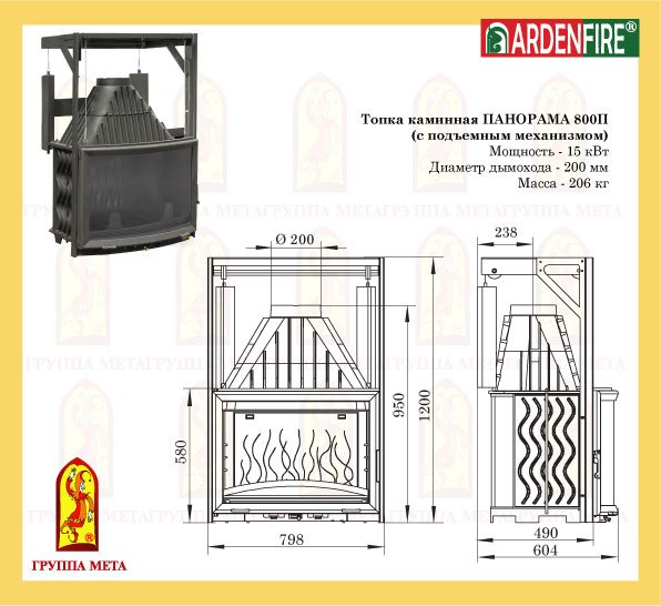 Инструкции, чертежи, документы - Каминная чугунная топка Мета Панорама 800 П