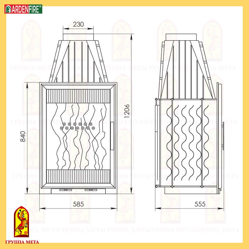 Инструкции, чертежи, документы - Чугунная топка Мета Вертикаль 840