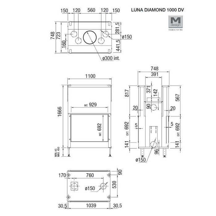 Инструкции, чертежи, документы - Каминная топка M-design Luna 1000 DV Diamond (Луна 1000 DV Даймонд)