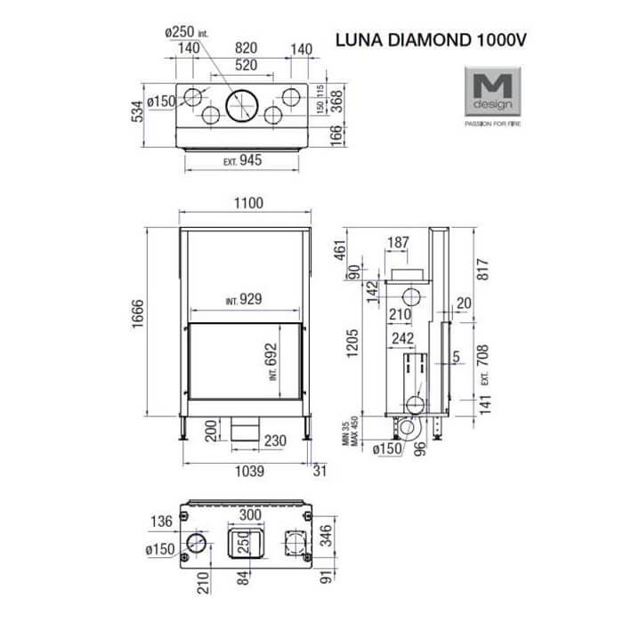 Инструкции, чертежи, документы - Каминная топка M-design Luna 1000 V Diamond (Луна 1000 V Даймонд)