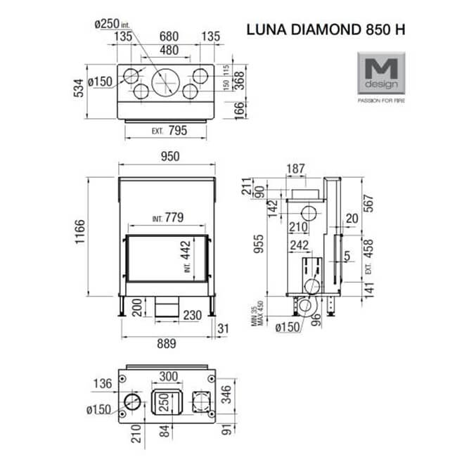 Инструкции, чертежи, документы - Каминная топка M-design Luna 850 Н Diamond (Луна 850 Н Даймонд)