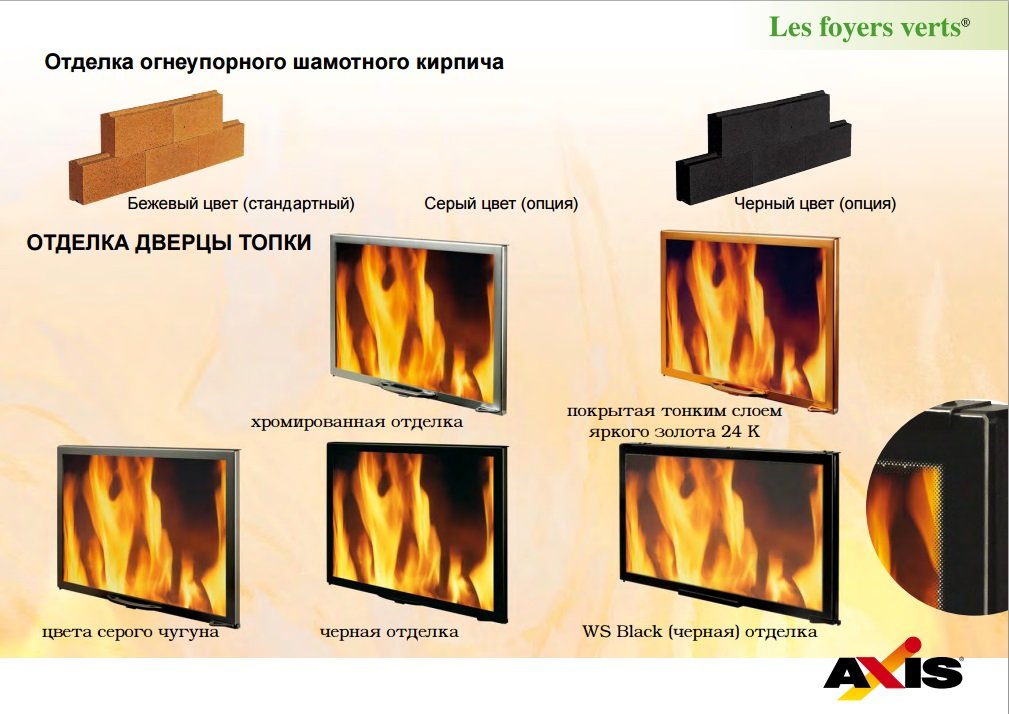 - Возможность выбрать отделку топочной камеры и отделку дверцы - Ваш камин будет уникальным.