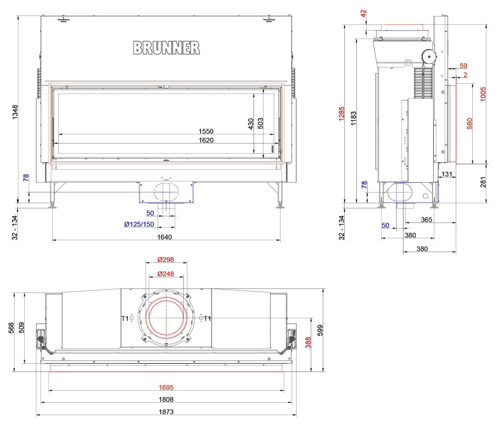 Каминная топка Brunner BKH flat 50/162 ST (декоративная рама)