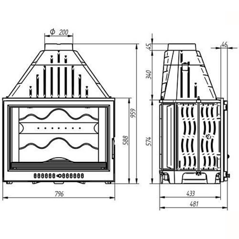 - Диаметр дымохода, мм 200