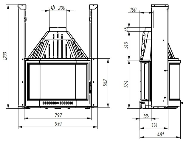 - Диаметр дымохода, мм 200