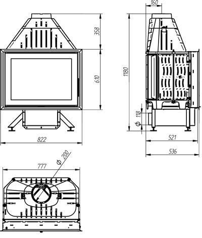 - Диаметр дымохода, мм 200
