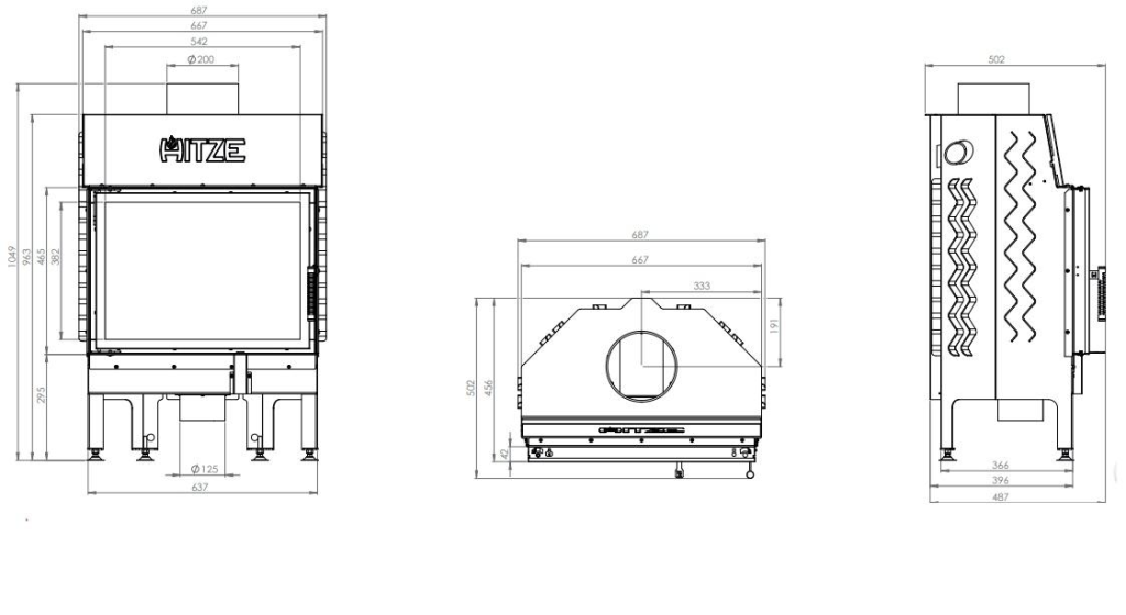 Инструкции, чертежи, документы - Каминная топка Hitze Albero AL11S.H DI