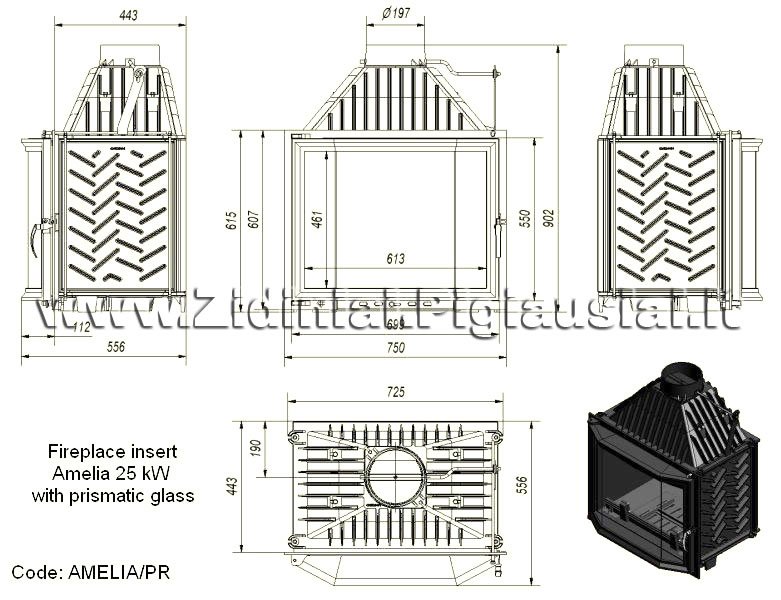 Инструкции, чертежи, документы - Каминная топка Kratki Amelia/PR (призма)