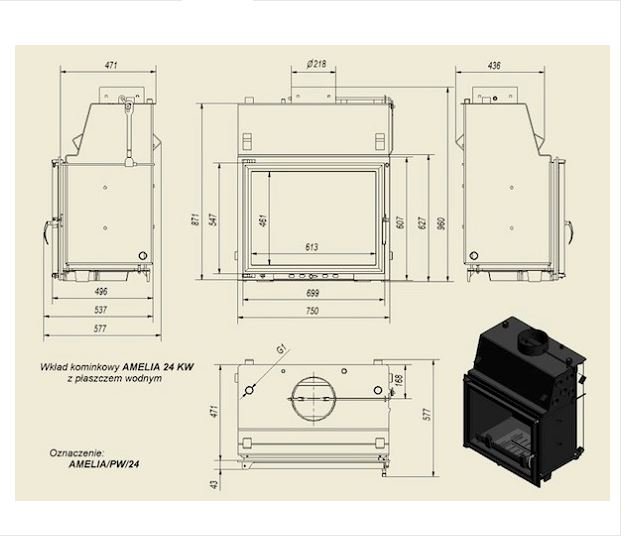 Инструкции, чертежи, документы - Каминная топка Kratki Amelia/PW/24/GLASS (двойное стекло)