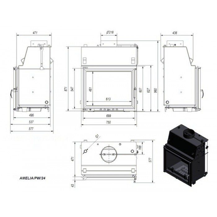 Инструкции, чертежи, документы - Каминная топка Kratki Amelia/PW/24/W