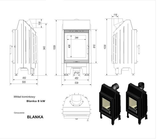 Инструкции, чертежи, документы - Каминная топка Kratki Blanka (керамич. футеровка)