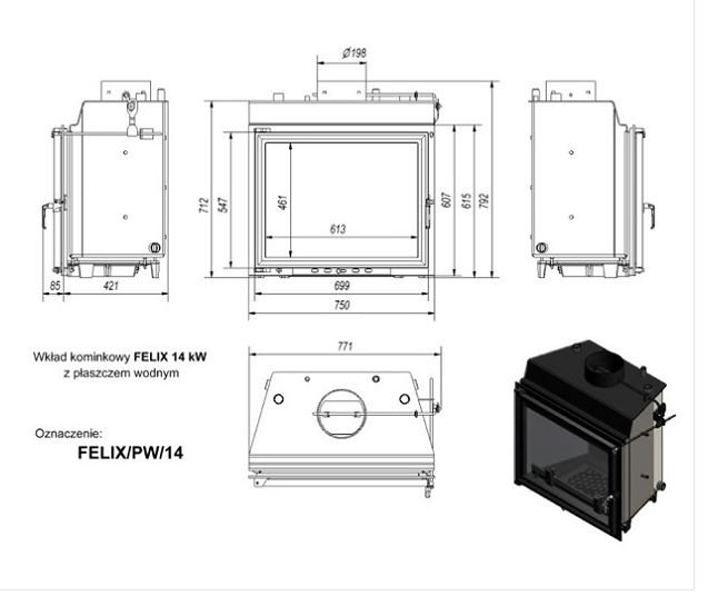 Инструкции, чертежи, документы - Каминная топка Kratki Felix/PW/14/W