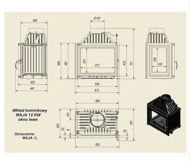 Инструкции, чертежи, документы - Каминная топка Kratki Maja/L (стекло слева)