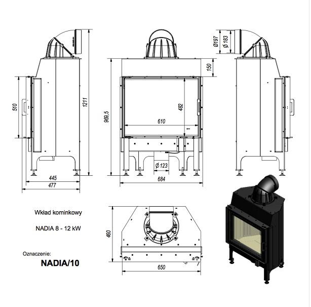 Инструкции, чертежи, документы - Каминная топка Kratki Pro Nadia/10
